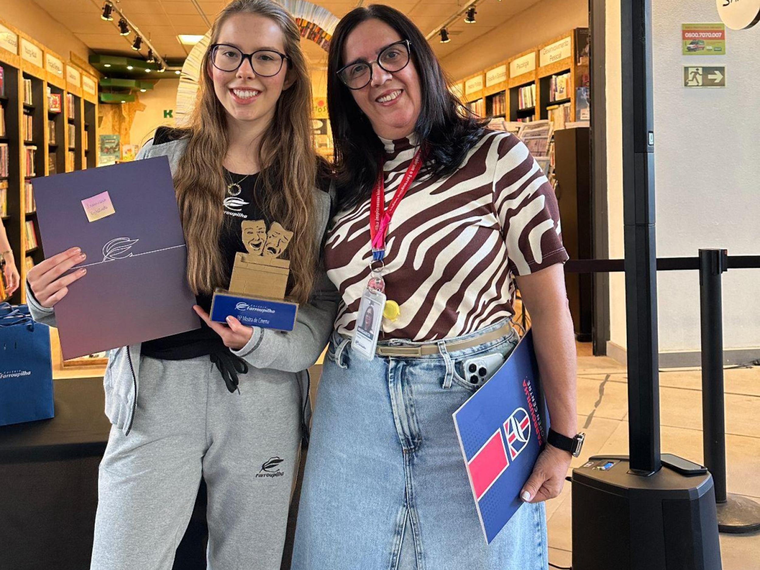Um dos eventos que fazem parte da Semana Cultural é a Mostra de Cinema, projeto idealizado e orientado pelos professores de Línguas Estrangeiras do Colégio Farroupilha. Neste ano, o Centro de Línguas promoveu um concurso para a escolha da nova estatueta que será entregue aos vencedores da Mostra. A estatueta mais votada foi o protótipo criado pela estudante Fernanda Salaverry, da 2ª série do Ensino Médio. A coordenadora de Línguas, Luciane Calcara, enfatizou o propósito do concurso e o envolvimento dos estudantes: “Essa iniciativa valorizou não apenas o olhar artístico dos estudantes, mas também a capacidade de pensar, criar e transformar ideias em imagens, histórias e emoções. Queremos expressar nossa sincera gratidão a todos os alunos que participaram da criação dos desenhos e protótipos que concorreram para representar este importante prêmio. Cada um de vocês contribuiu com imaginação, sensibilidade e dedicação — e isso fez toda a diferença.”
