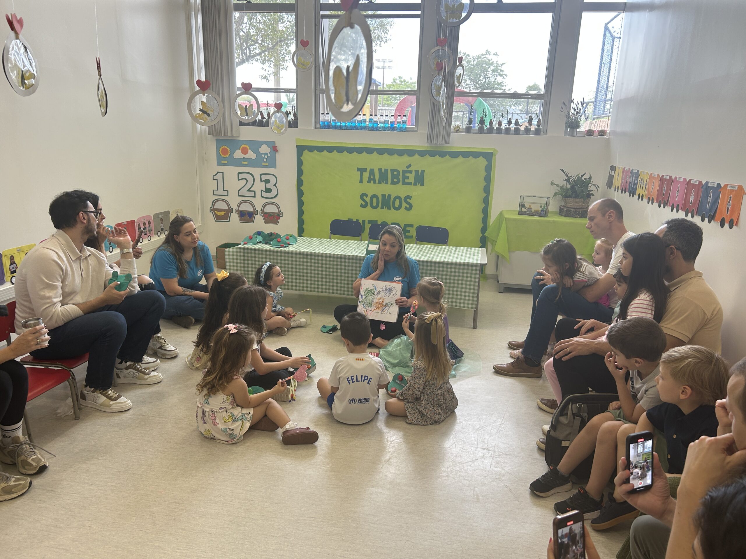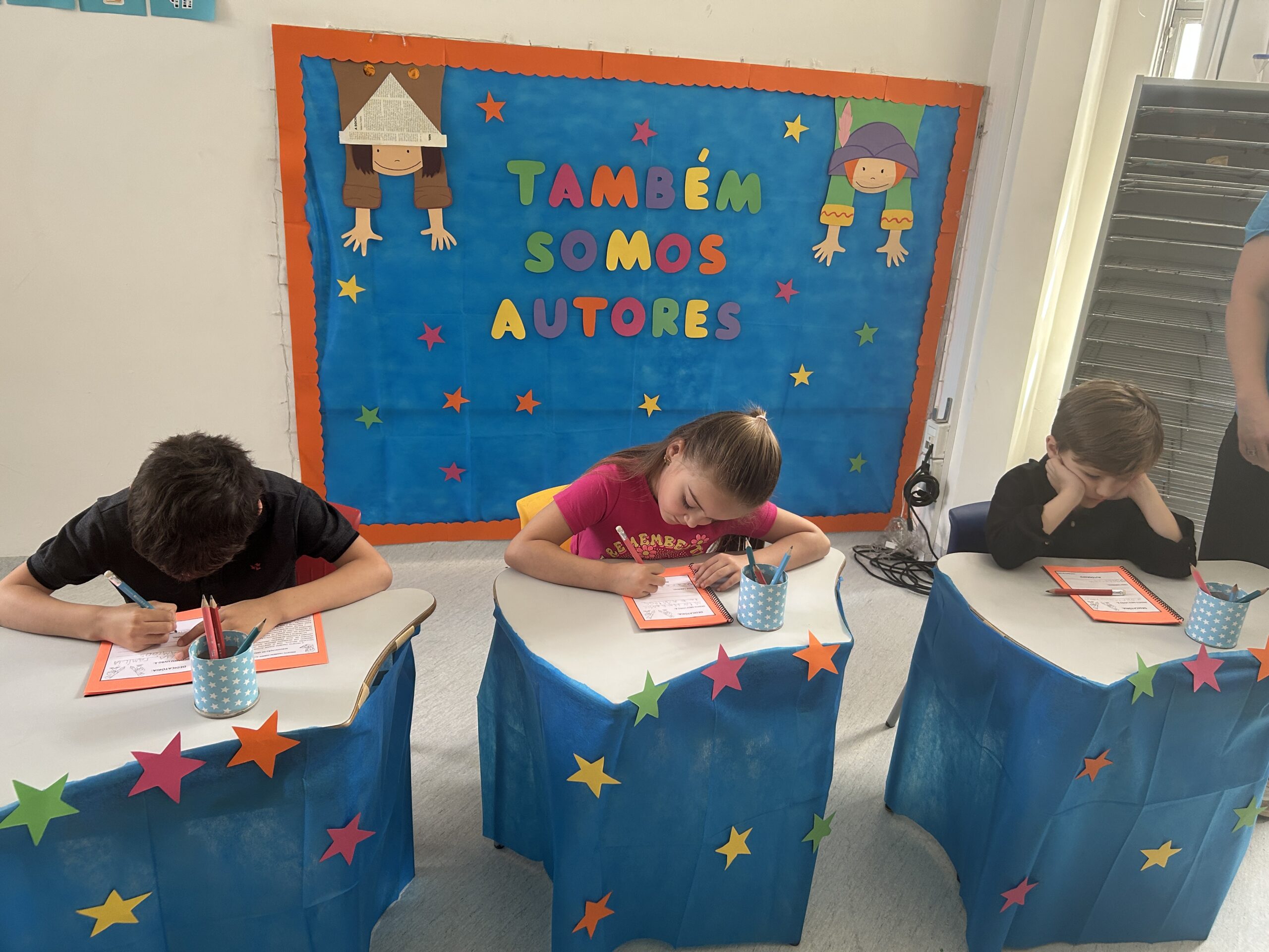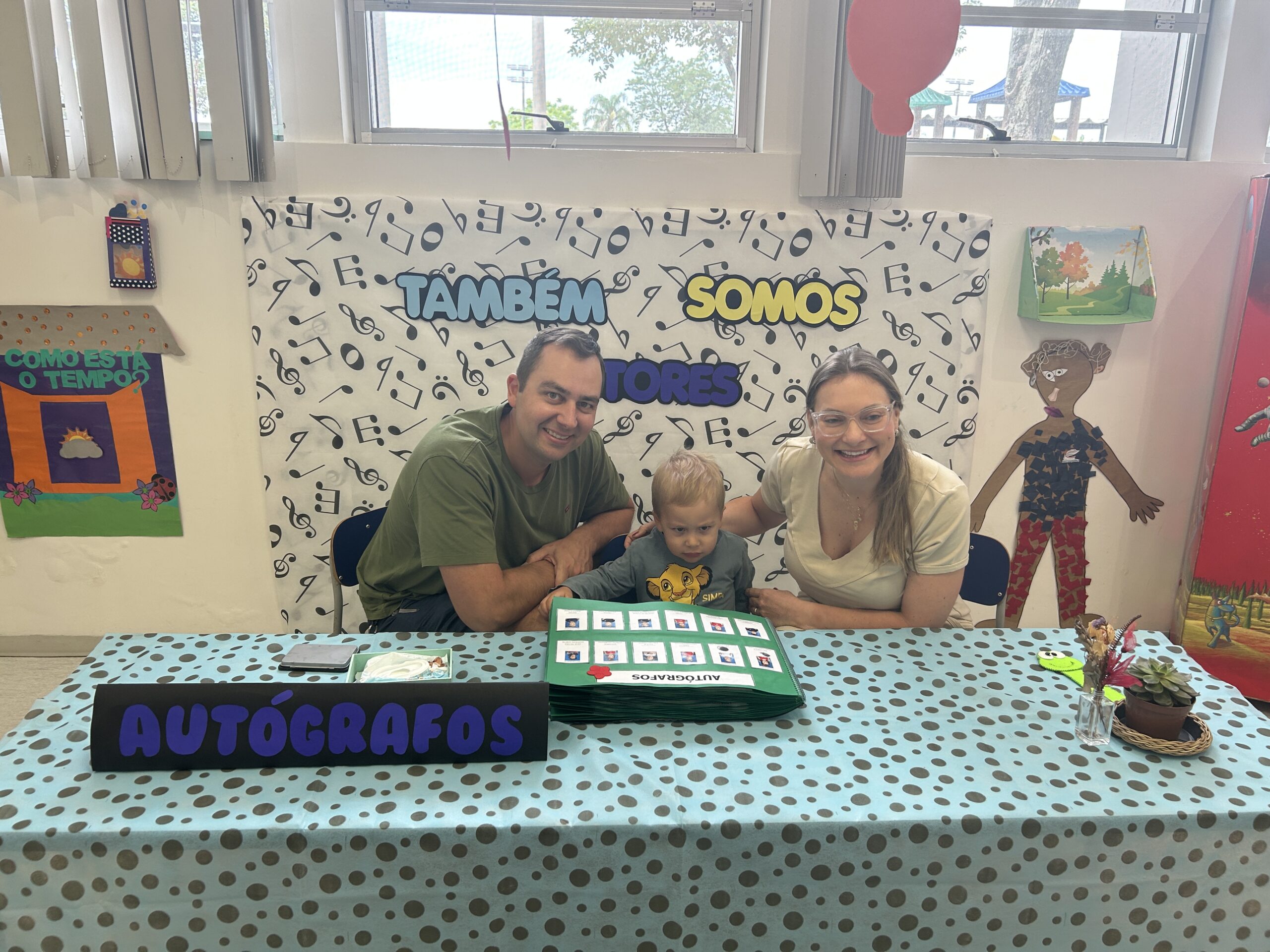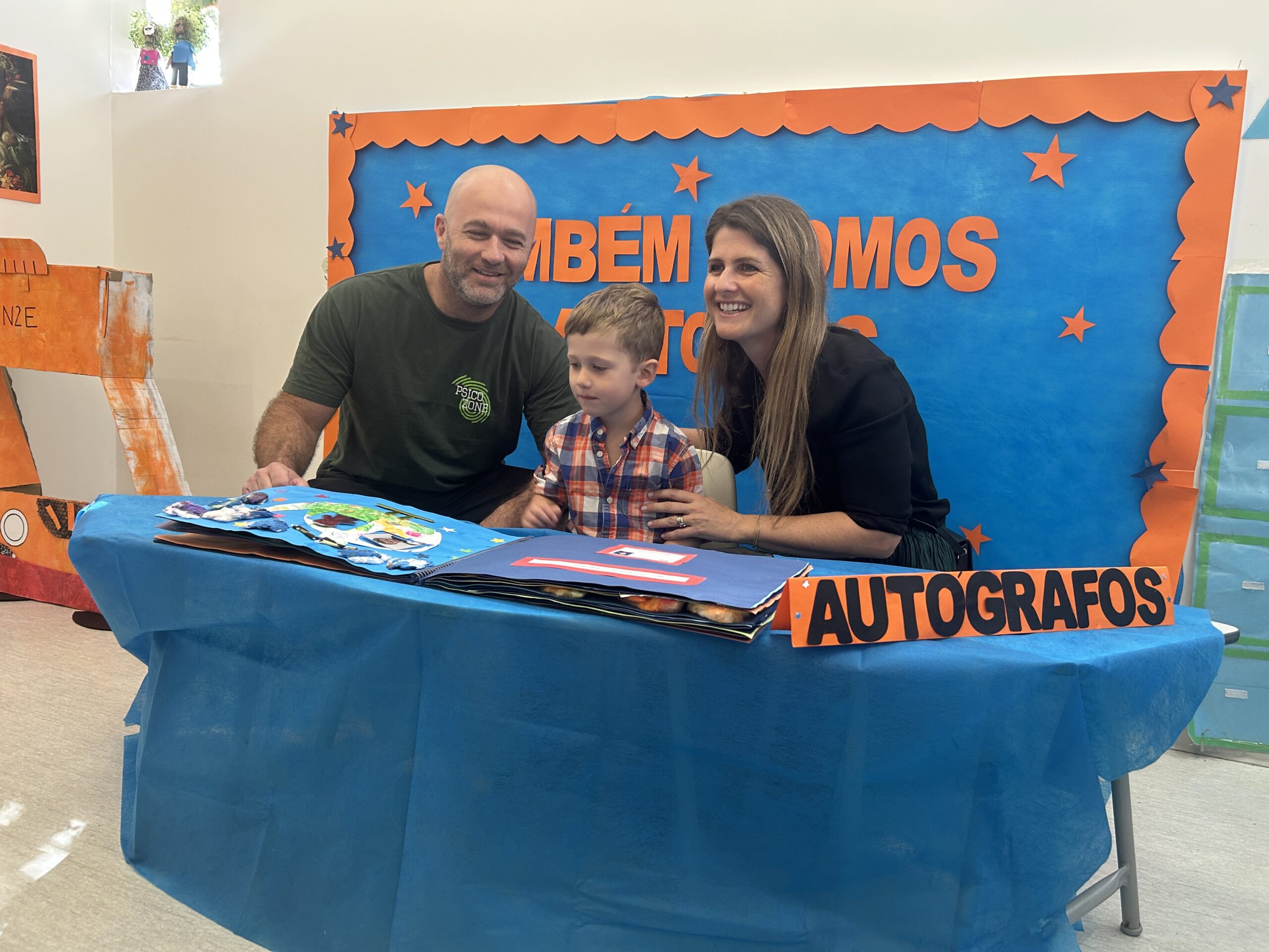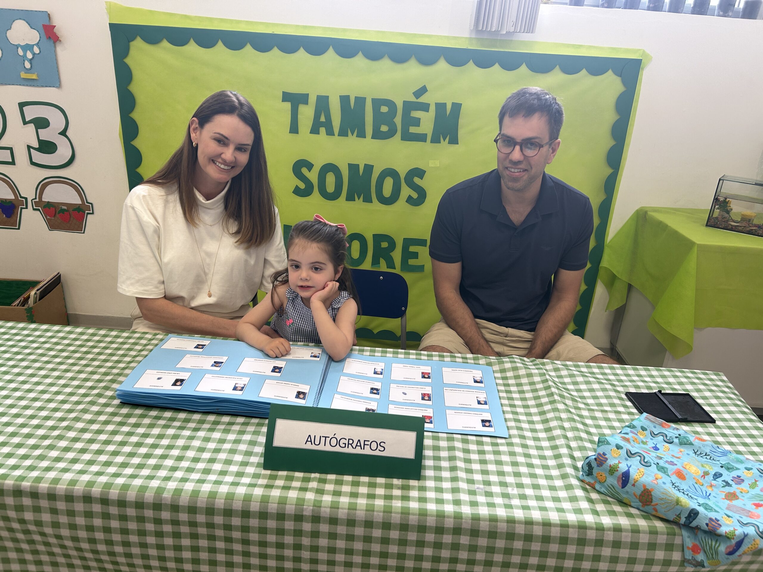 No sábado, 25 de outubro, as crianças e a equipe da Educação Infantil receberam as famílias para o evento Diálogos Criativos: Também Somos Autores e Oficina de Criação. O projeto Também Somos Autores, consiste na criação de um livro e contempla todas as turmas da Educação Infantil. Nos níveis 1, 2 e 3 a escrita é coletiva, no Nível 4, a turma é dividida em grupos, e, no Nível 5, cada criança escreve, com ajuda da professora, e ilustra o seu próprio livro. No dia do evento, os pequenos realizaram sessões de autógrafos para as famílias.