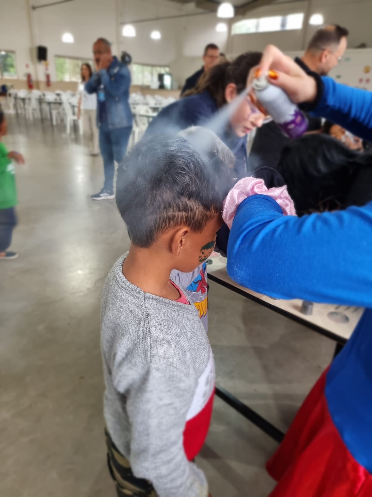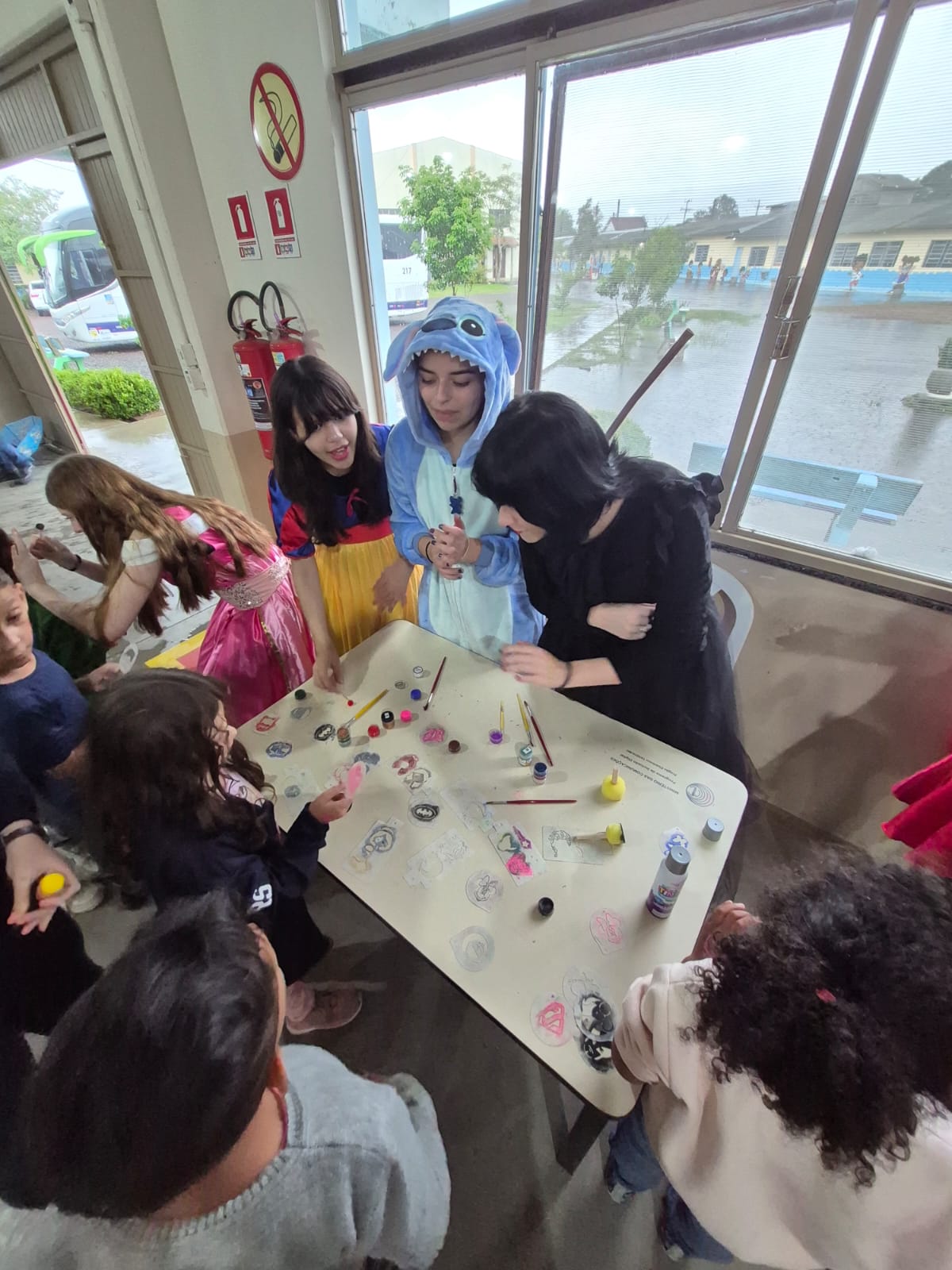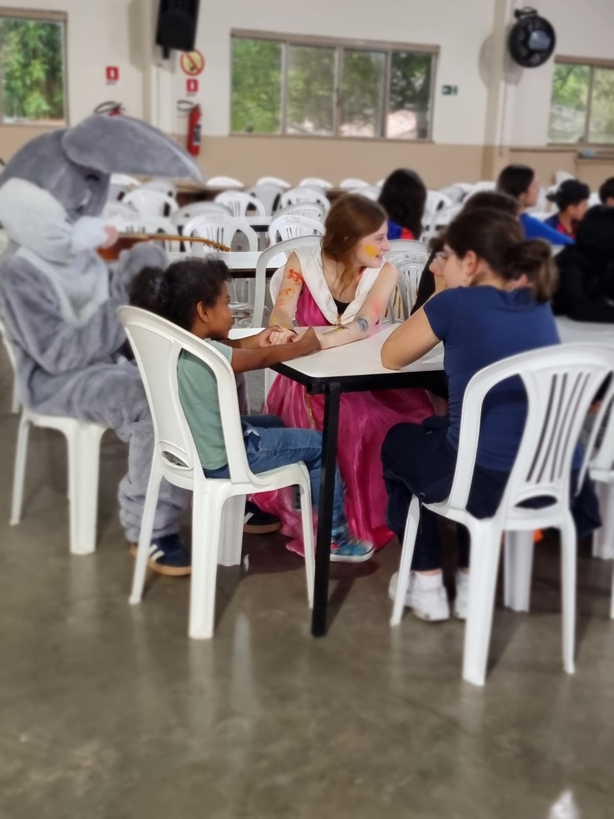 No dia da visita, a experiência ganhou um tom ainda mais vibrante com a participação conjunta dos estudantes de Voluntariado e do Grupo de Teatro. Caracterizados como personagens conhecidos, os alunos utilizaram a arte para encantar e divertir as crianças atendidas pelo centro, transformando a tarde em um momento de pura integração e alegria. Entre brincadeiras, músicas, pinturas faciais e penteados criativos, o grupo promoveu uma vivência significativa que culminou na entrega dos kits preparados na escola. O encontro foi encerrado com uma confraternização em torno de um lanche oferecido pelo próprio Centro Social, um gesto que simbolizou a união e o fortalecimento dos laços de solidariedade entre todos os envolvidos nessa jornada.