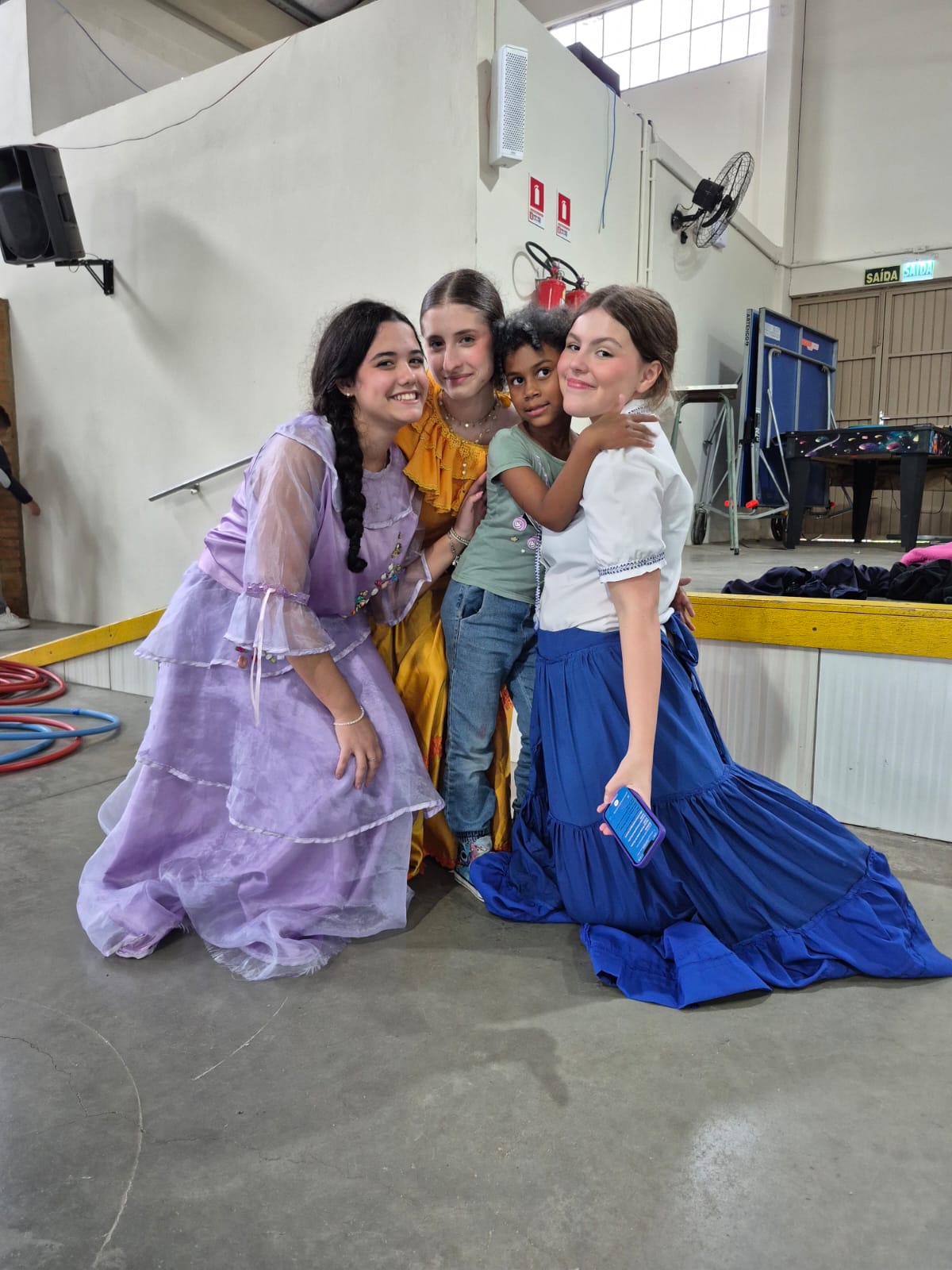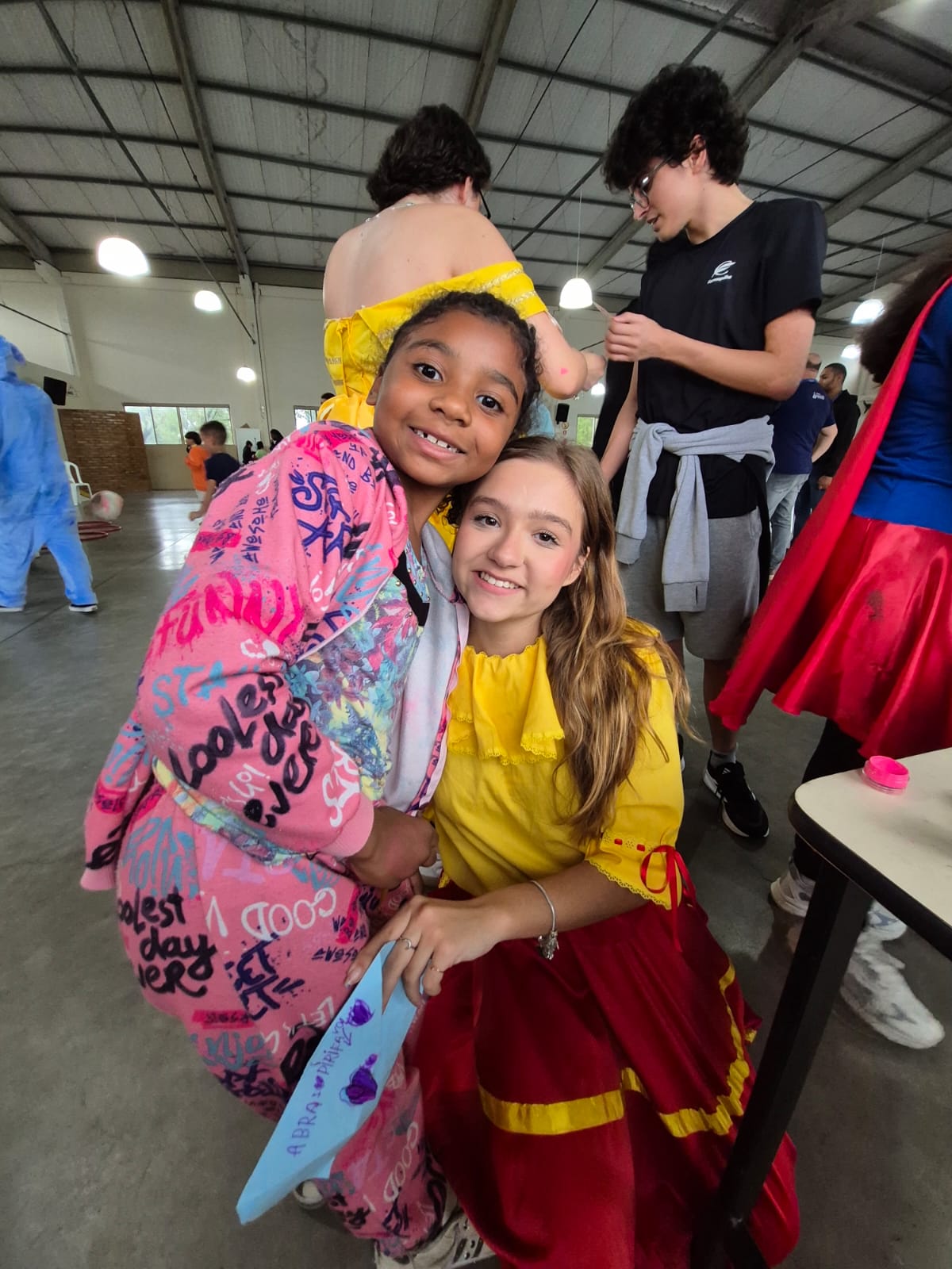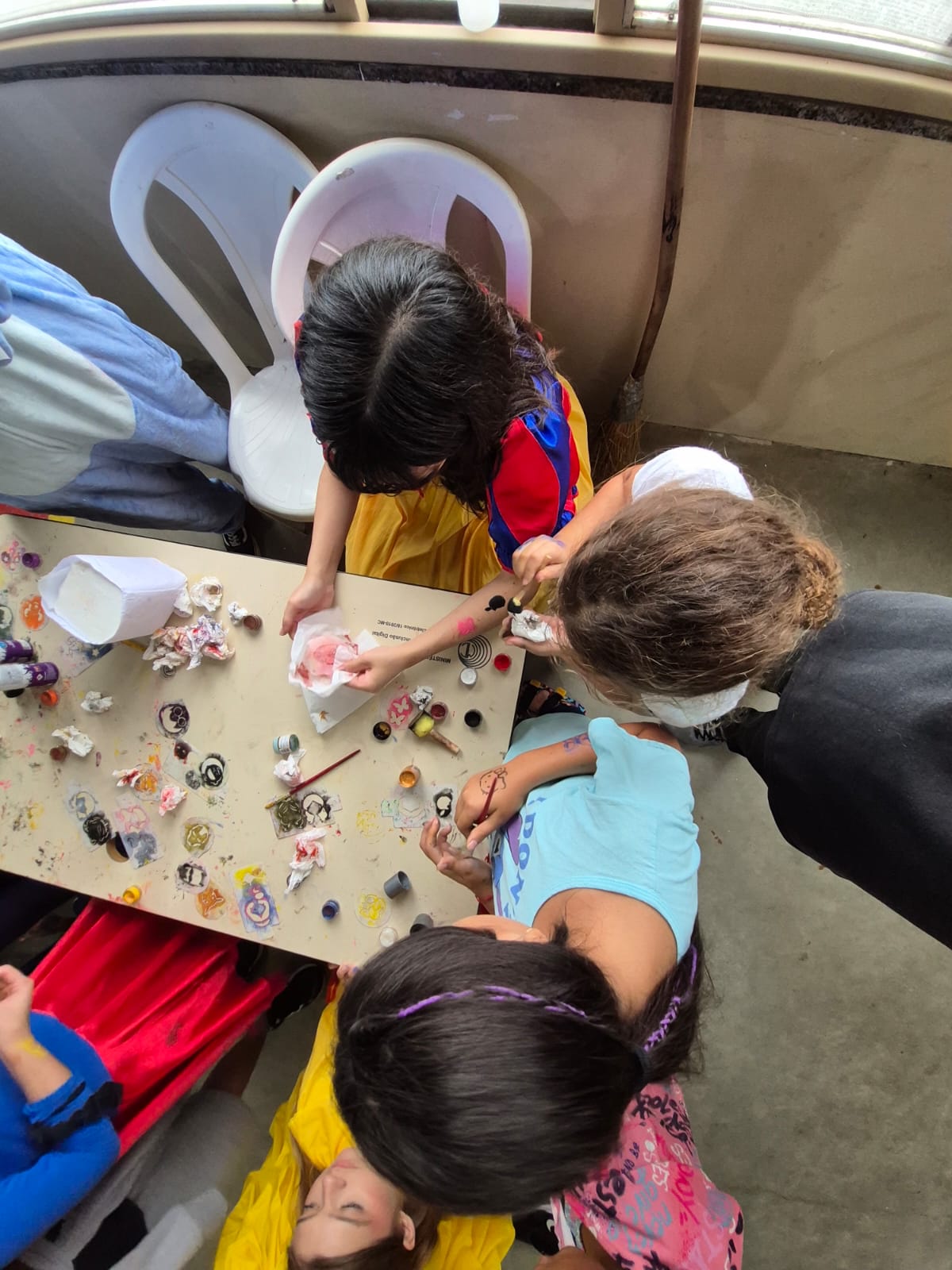 No dia da visita, a experiência ganhou um tom ainda mais vibrante com a participação conjunta dos estudantes de Voluntariado e do Grupo de Teatro. Caracterizados como personagens conhecidos, os alunos utilizaram a arte para encantar e divertir as crianças atendidas pelo centro, transformando a tarde em um momento de pura integração e alegria. Entre brincadeiras, músicas, pinturas faciais e penteados criativos, o grupo promoveu uma vivência significativa que culminou na entrega dos kits preparados na escola. O encontro foi encerrado com uma confraternização em torno de um lanche oferecido pelo próprio Centro Social, um gesto que simbolizou a união e o fortalecimento dos laços de solidariedade entre todos os envolvidos nessa jornada.